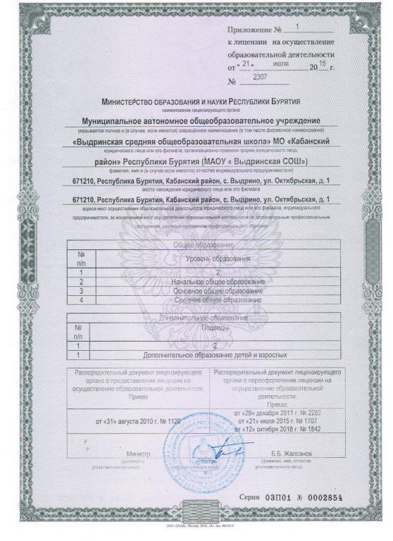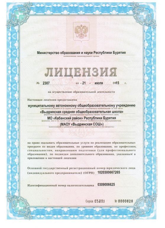 | Адрес местонахождения образовательной организации* | 671210, Бурятия Респ, Кабанский р-н, Выдрино с, Октябрьская ул, здание № 1 |